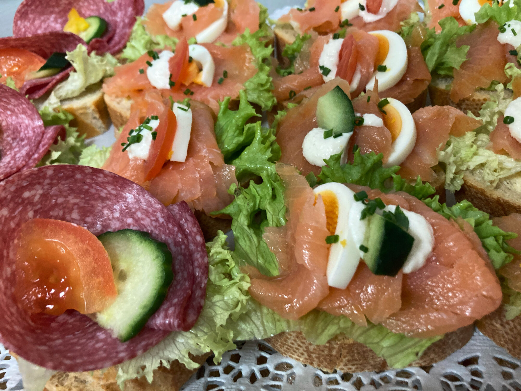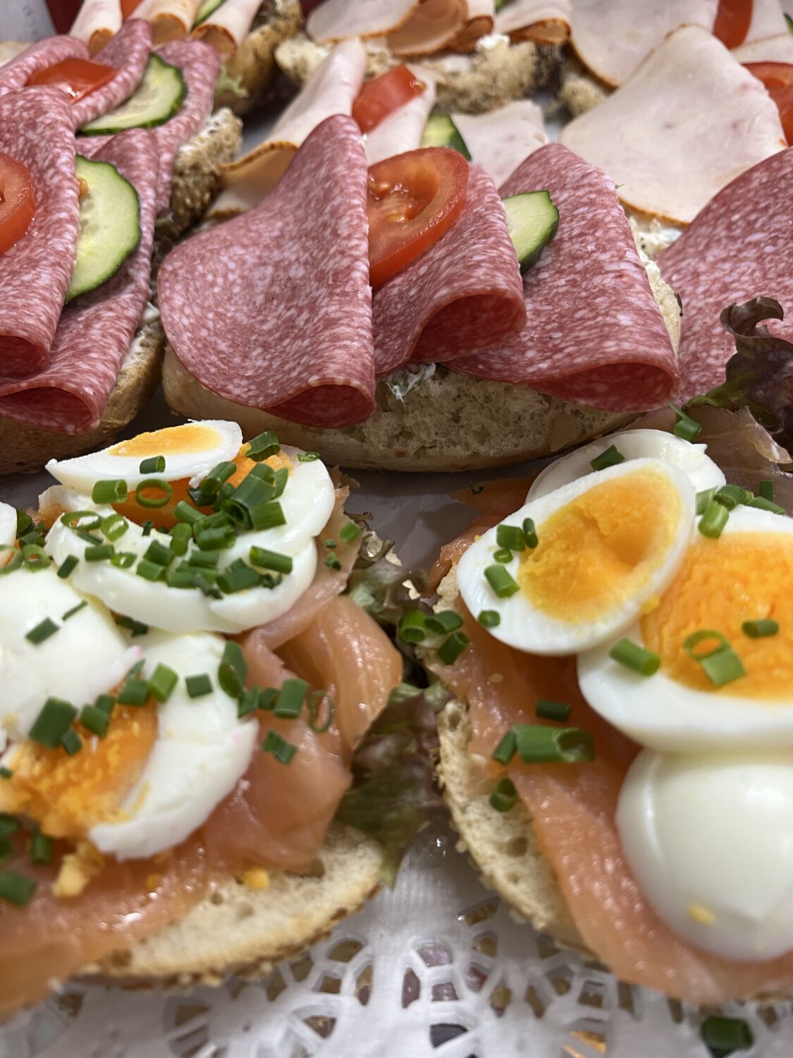 Dazu kreieren wir originelle Delikatessenplatten und fein belegte Spezialitäten, die nicht nur gut aussehen, sondern vor allem hervorragend schmecken.